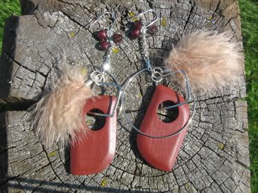 These unique lightweight earrings with its strong, rich wooden shapes and matching genuine pearls promise to accent a variety of looks. The silver toned base is classy while the whimsical feathers add a casual flair. Sterling earring hooks. You will definitely not see anyone else in these beauties!